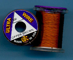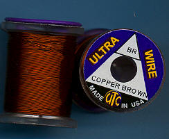 | Měděněhnědý (CopperBrown) drátek UTC, velmi tenký, UWS69. Klasický materiál na kroužkování Vašich mušek. Vynikajícím zbůsobem imituje články vaší umělé mušky - především různých druhů larev apod. Každý vazač se dříve či později uchýlí k použití tohoto materiálu. |