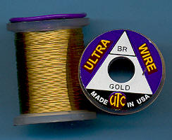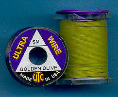 | Zlatoolivový (Goldenolive) drátek UTC, tenký, UWS159. Klasický materiál na kroužkování Vašich mušek. Vynikajícím zbůsobem imituje články vaší umělé mušky - především různých druhů larev apod. Každý vazač se dříve či později uchýlí k použití tohoto materiálu. |