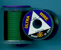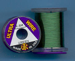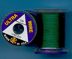 | Zelený (Green) drátek UTC, tenký, UWS169. Klasický materiál na kroužkování Vašich mušek. Vynikajícím zbůsobem imituje články vaší umělé mušky - především různých druhů larev apod. Každý vazač se dříve či později uchýlí k použití tohoto materiálu. |
