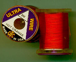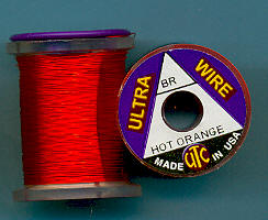 | Ohnivěoranžový (HotOrange) drátek UTC, tenký, UWS187. Klasický materiál na kroužkování Vašich mušek. Vynikajícím zbůsobem imituje články vaší umělé mušky - především různých druhů larev apod. Každý vazač se dříve či později uchýlí k použití tohoto materiálu. |