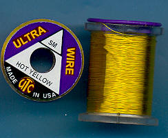 | Ohnivěžlutý (HotYellow) drátek UTC, tenký, UWS189. Klasický materiál na kroužkování Vašich mušek. Vynikajícím zbůsobem imituje články vaší umělé mušky - především různých druhů larev apod. Každý vazač se dříve či později uchýlí k použití tohoto materiálu. |