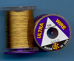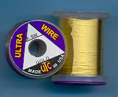 | Zlatý(Gold) drátek UTC, velmi tenký, UWX153. Klasický materiál na kroužkování Vašich mušek. Vynikajícím zbůsobem imituje články vaší umělé mušky - především různých druhů larev apod. Každý vazač se dříve či později uchýlí k použití tohoto materiálu. Drátek této tloušťky je vhodný pro použití i na těch nejmenších muškách. |