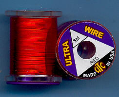 | Červený(Red) drátek UTC, tenký, UWS310. Klasický materiál na kroužkování Vašich mušek. Vynikajícím zbůsobem imituje články vaší umělé mušky - především různých druhů larev apod. Každý vazač se dříve či později uchýlí k použití tohoto materiálu. Drátek této tloušťky je vhodný pro použití i na těch nejmenších muškách. |